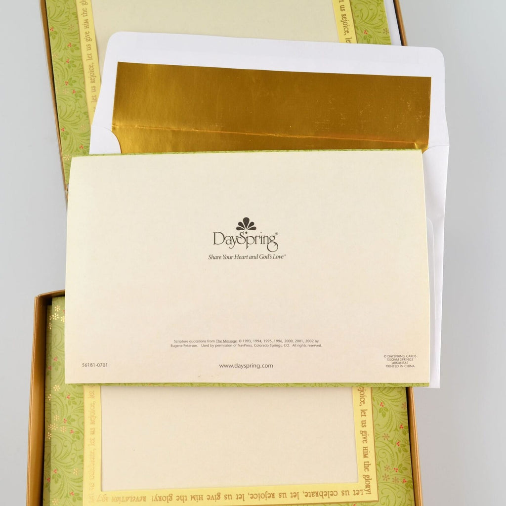 * Inside there is a message surrounding a blank spot for a personal note. The message reads " Praying you enjoy every moment of celebrating Jesus and the miracle of His birth."