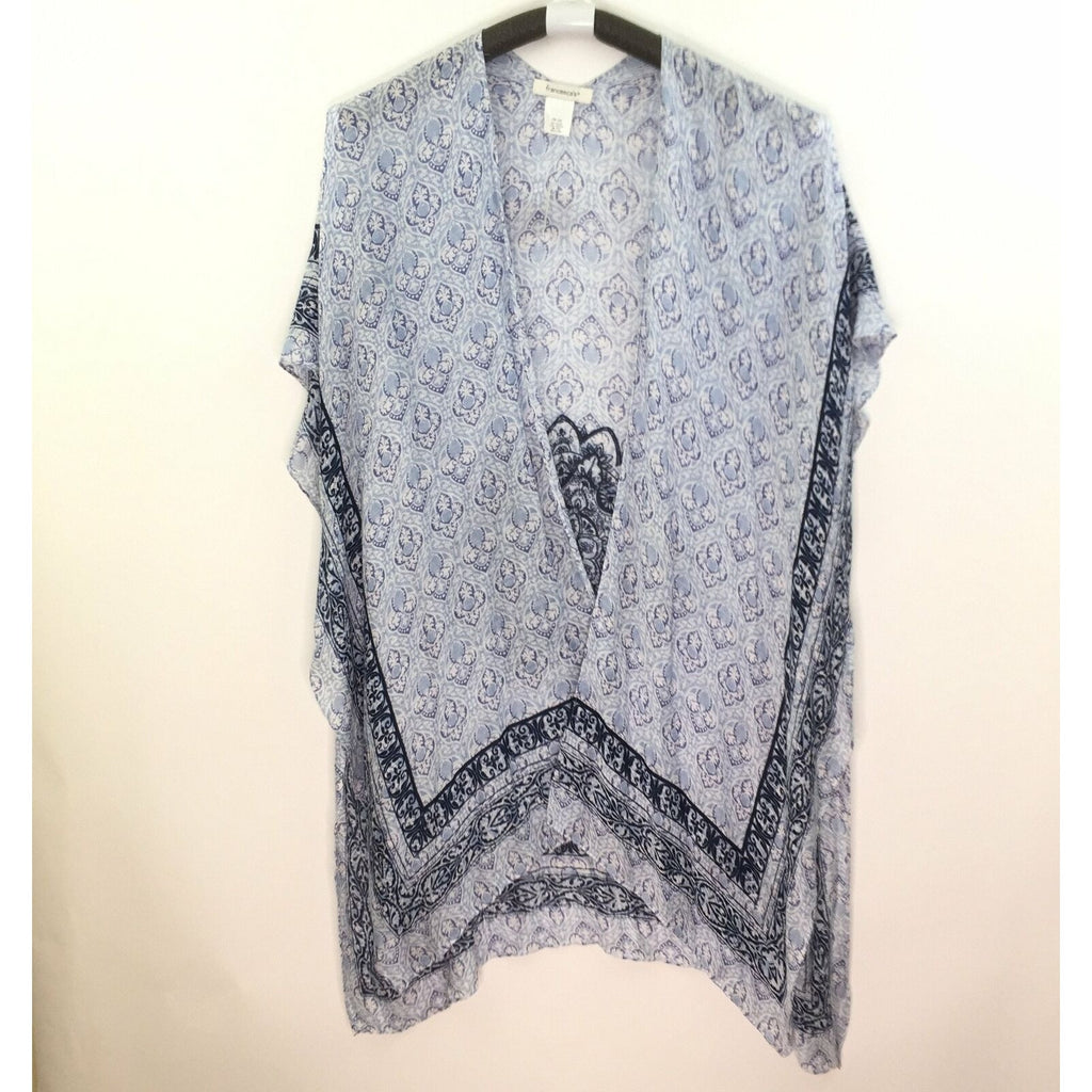 Francesca’s Womens Kimono Boho Cardigan - Blue Floral - Scarf Wrap - One Size