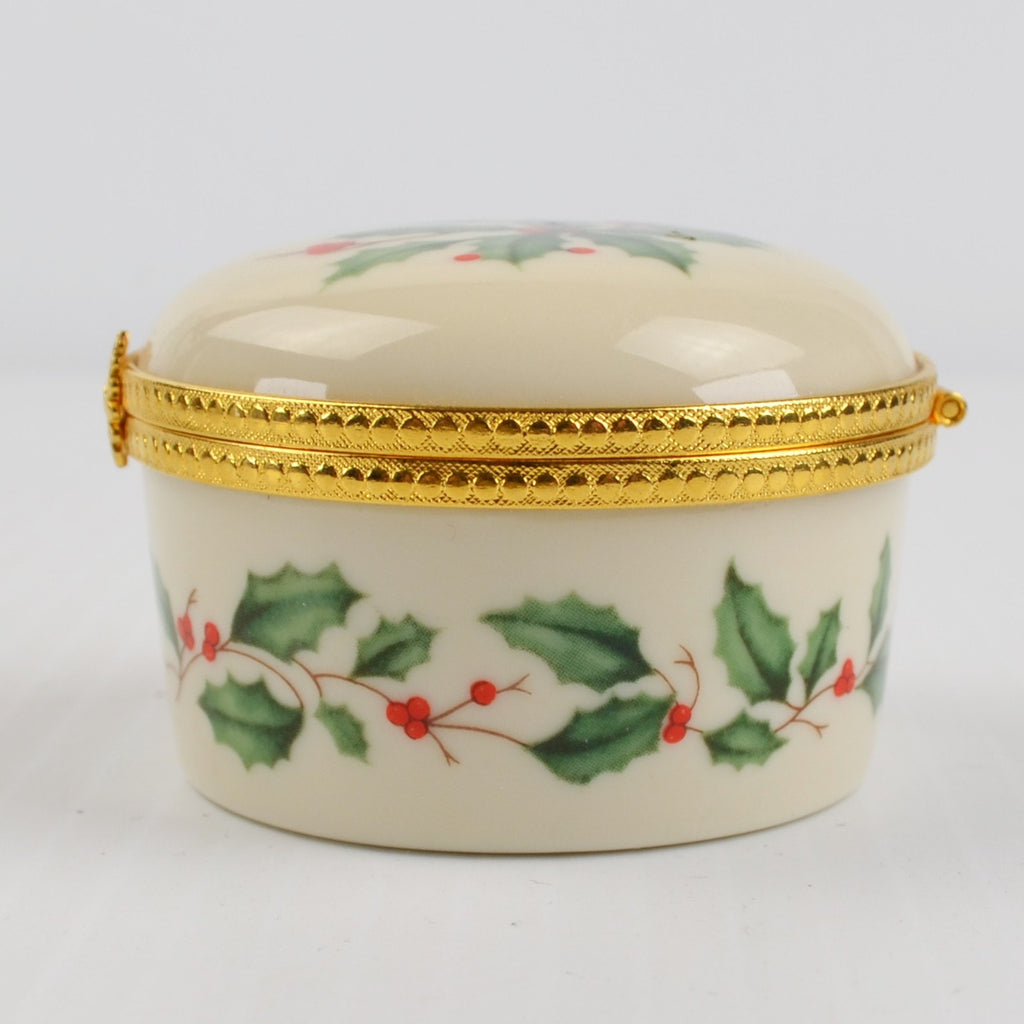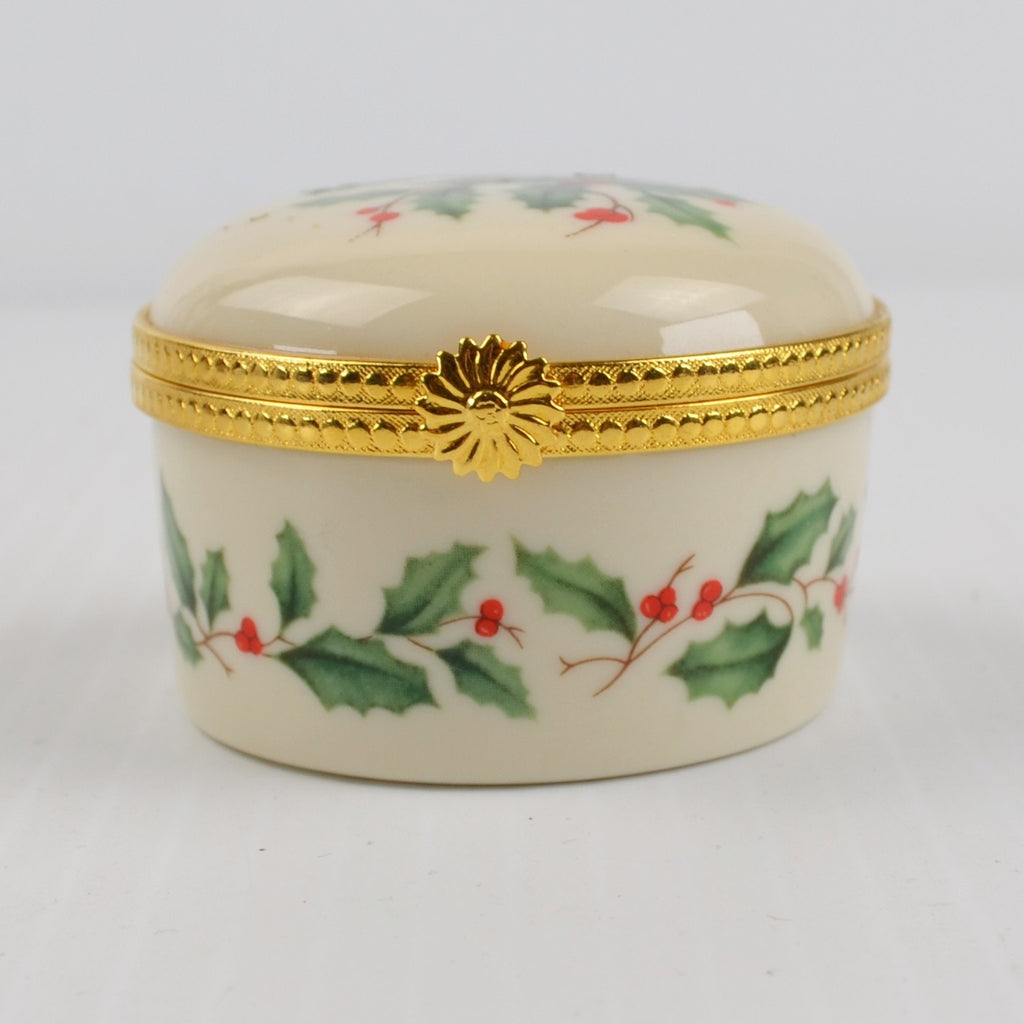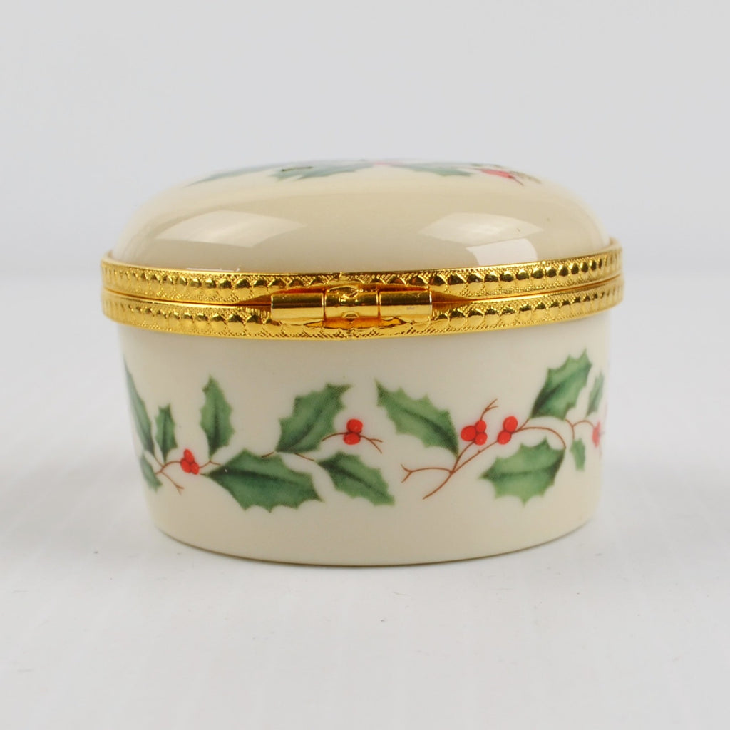 * Lenox Porcelain Christmas Hinged Holly Berry Gold Trim Trinket Box