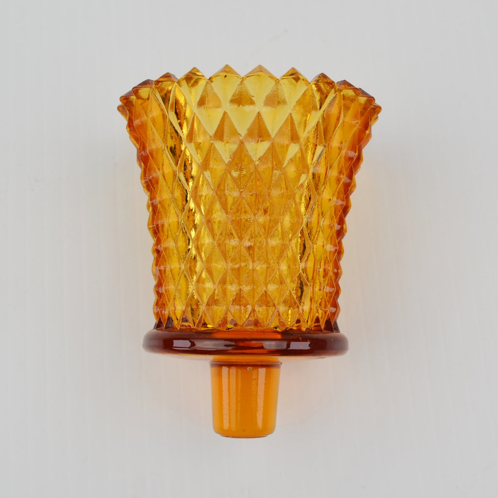 Amber Candle Holder Diamond Hobnail Glass Votive Tealight Peg Sconce Honeycomb