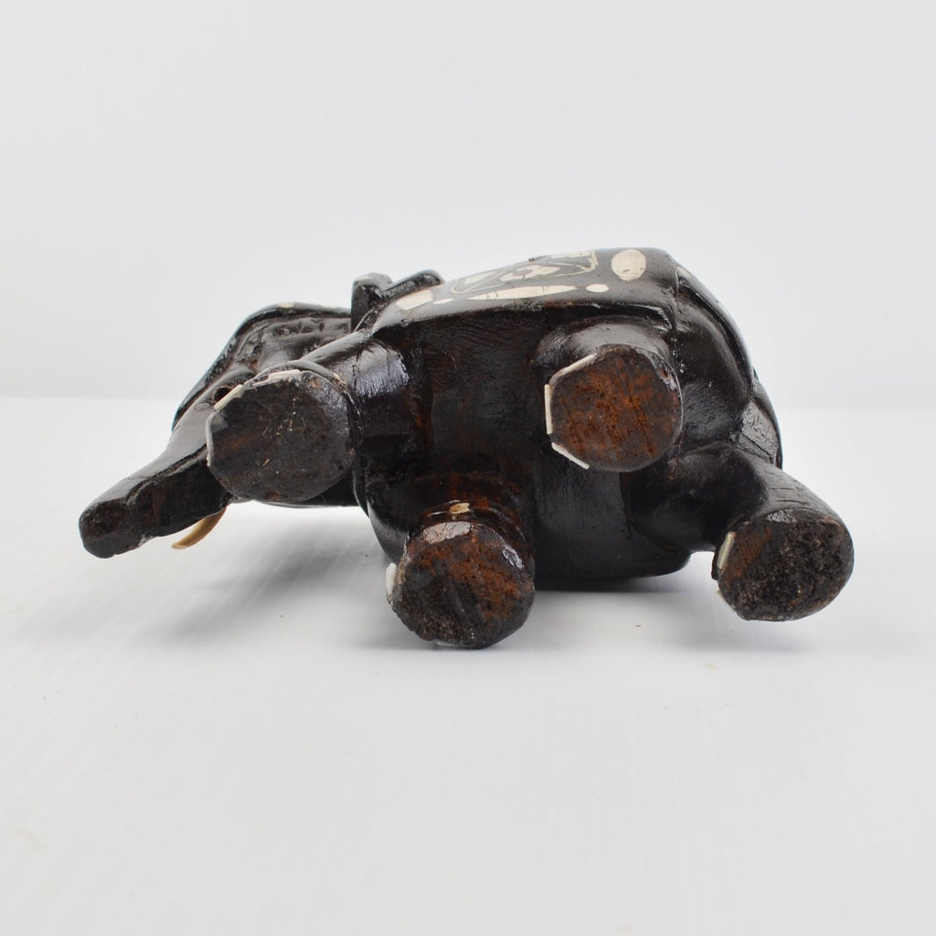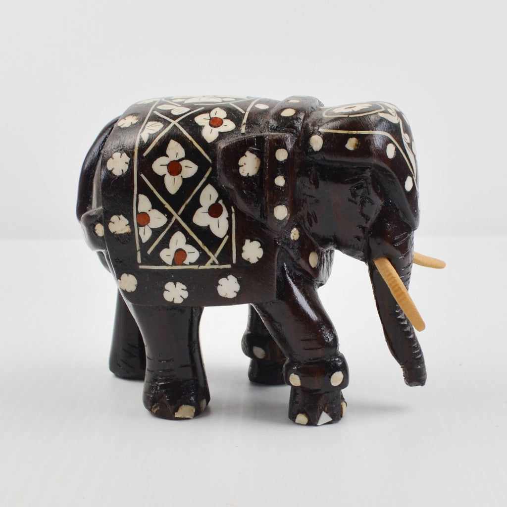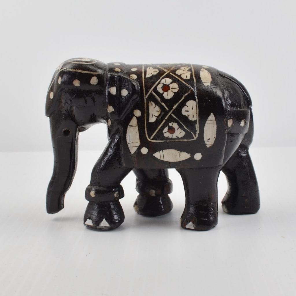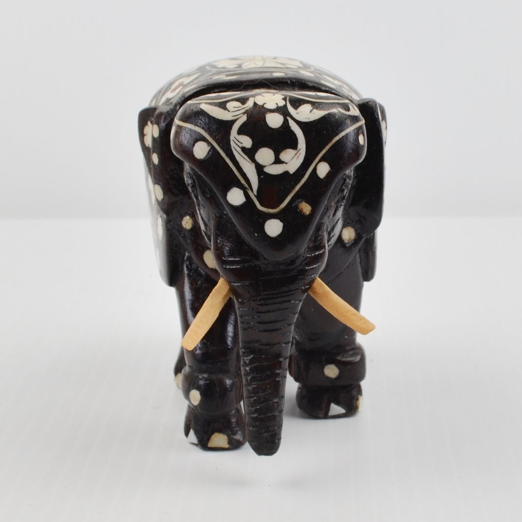 Wooden Elephants Hand Carved Painted Figurine Sculpture Bohemian - Lot of 2