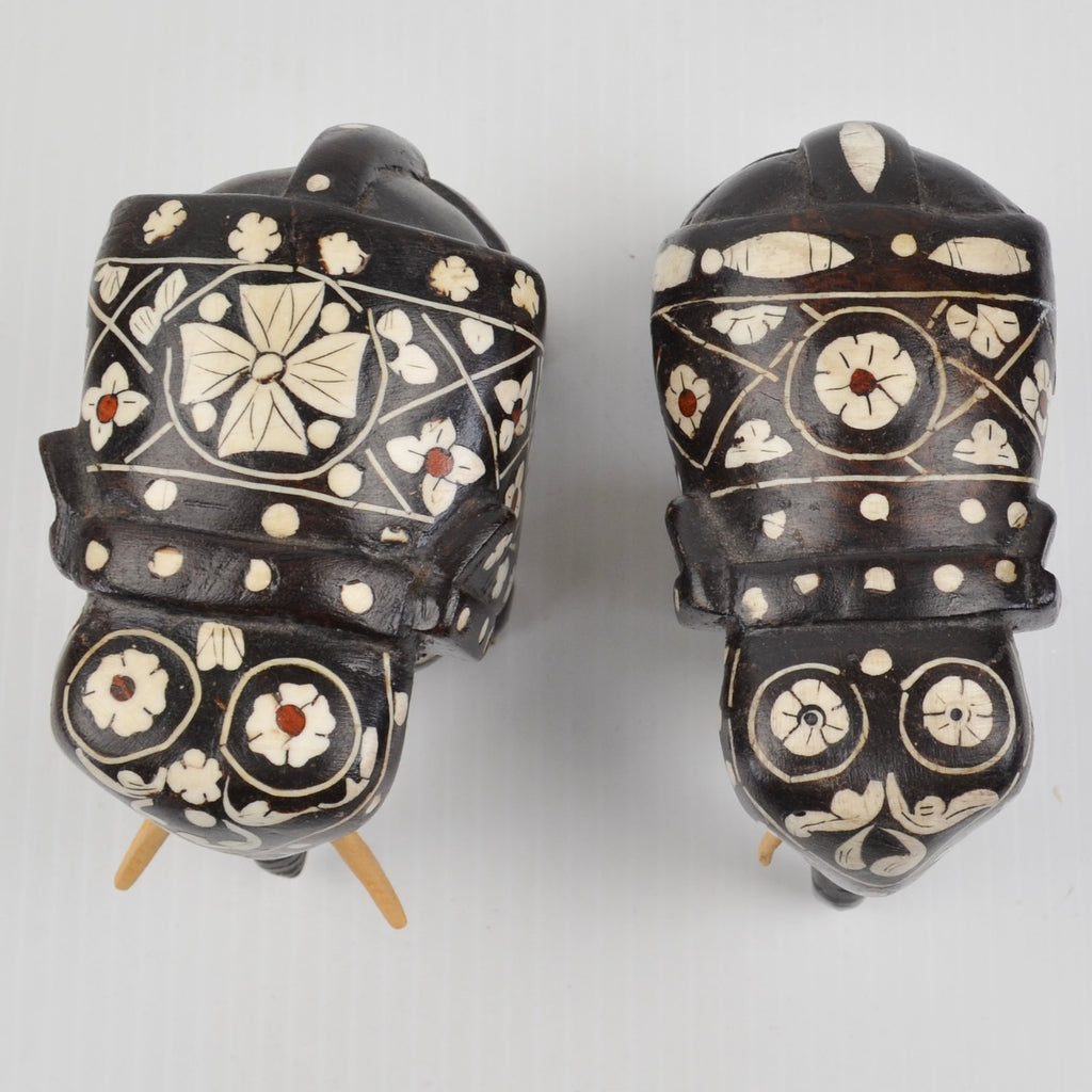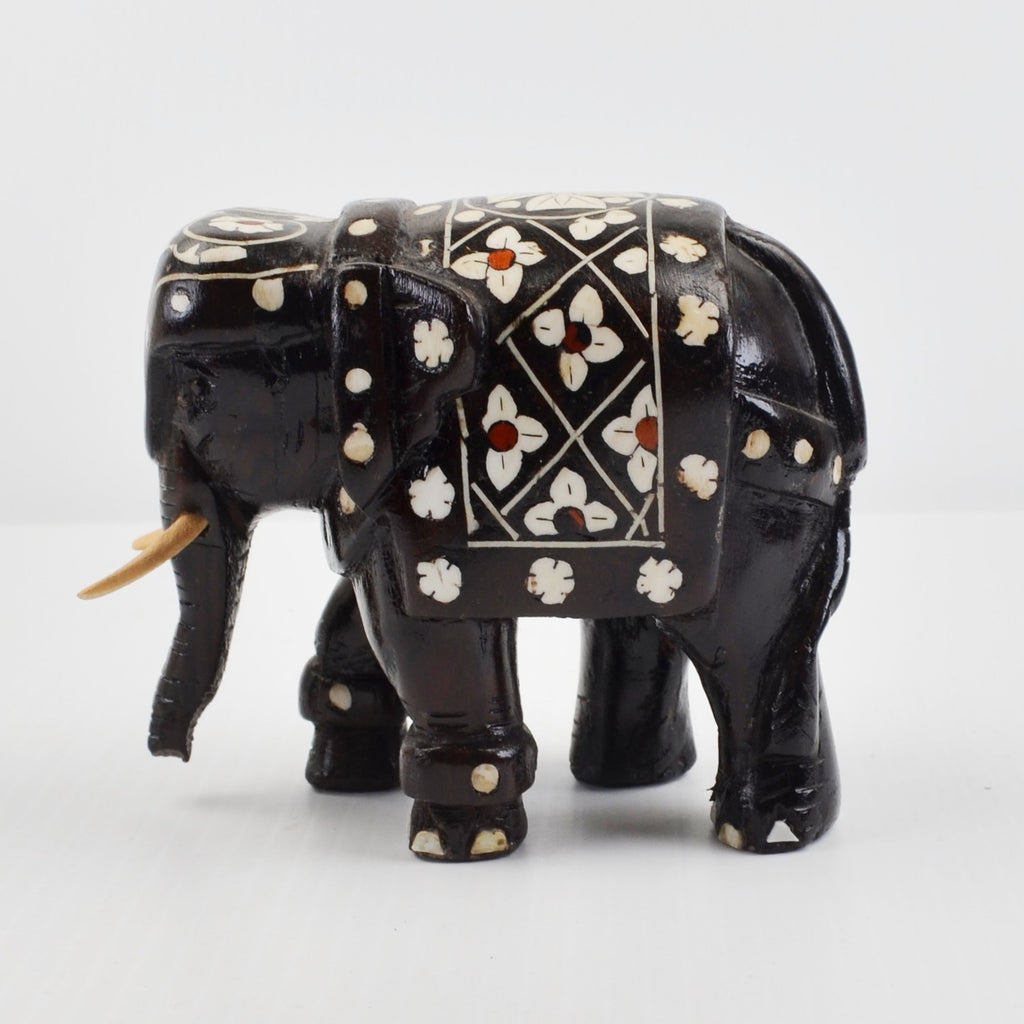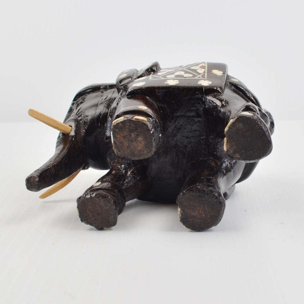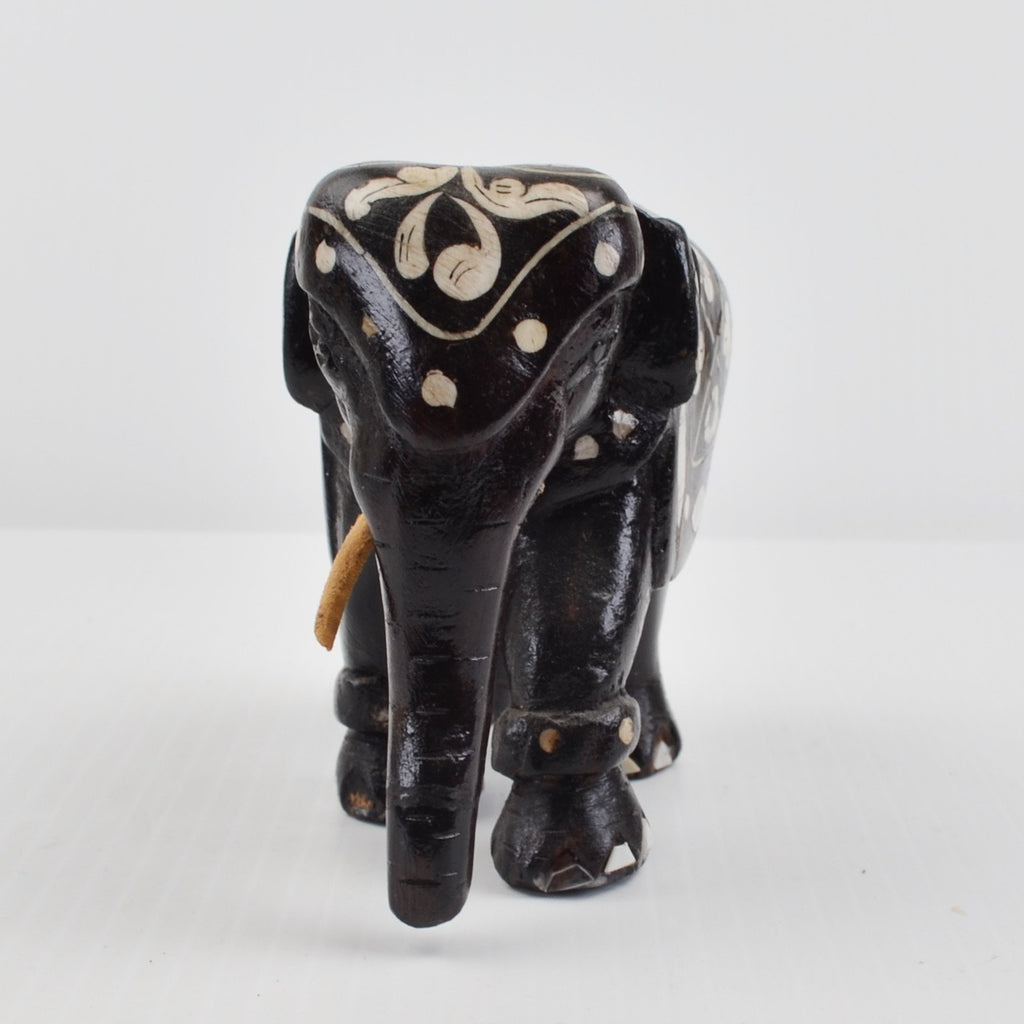 Wooden Elephants Hand Carved Painted Figurine Sculpture Bohemian - Lot of 2