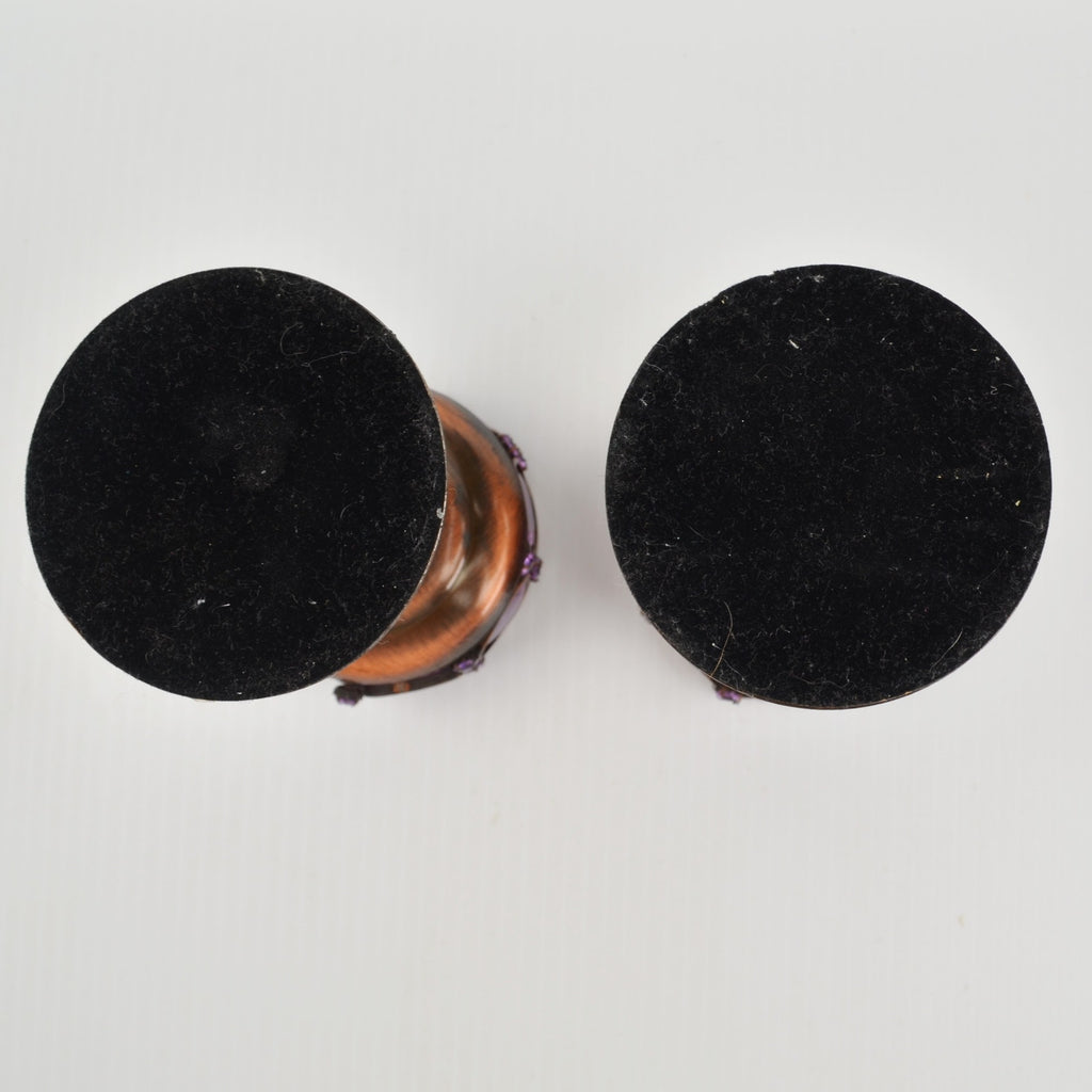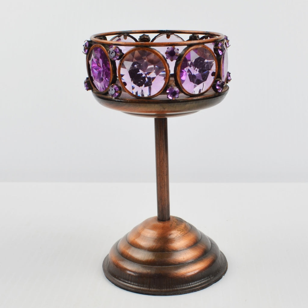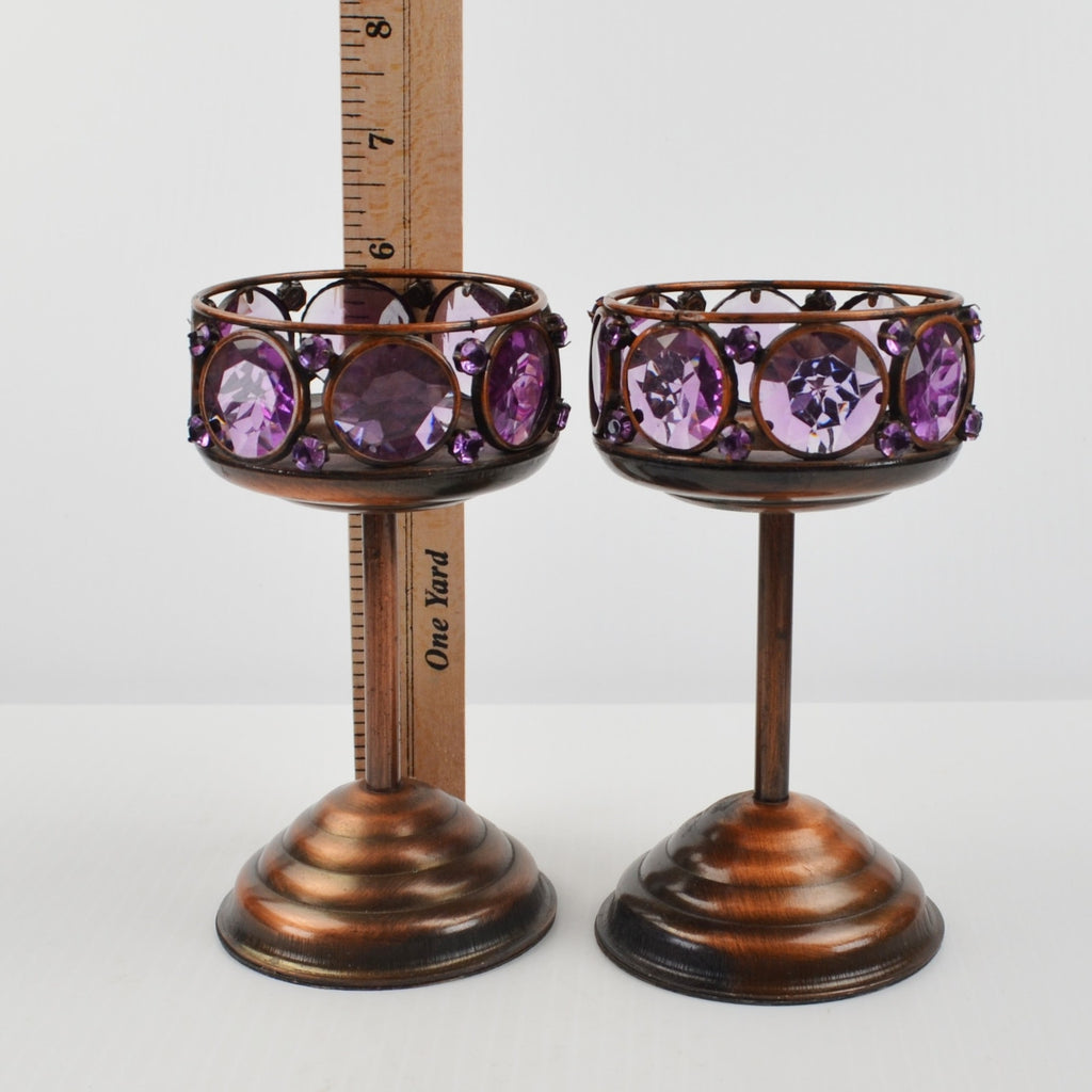 2 Copper Toned Goblet Candle Holder Set - Faceted Amethyst Purple Beaded 5.75"