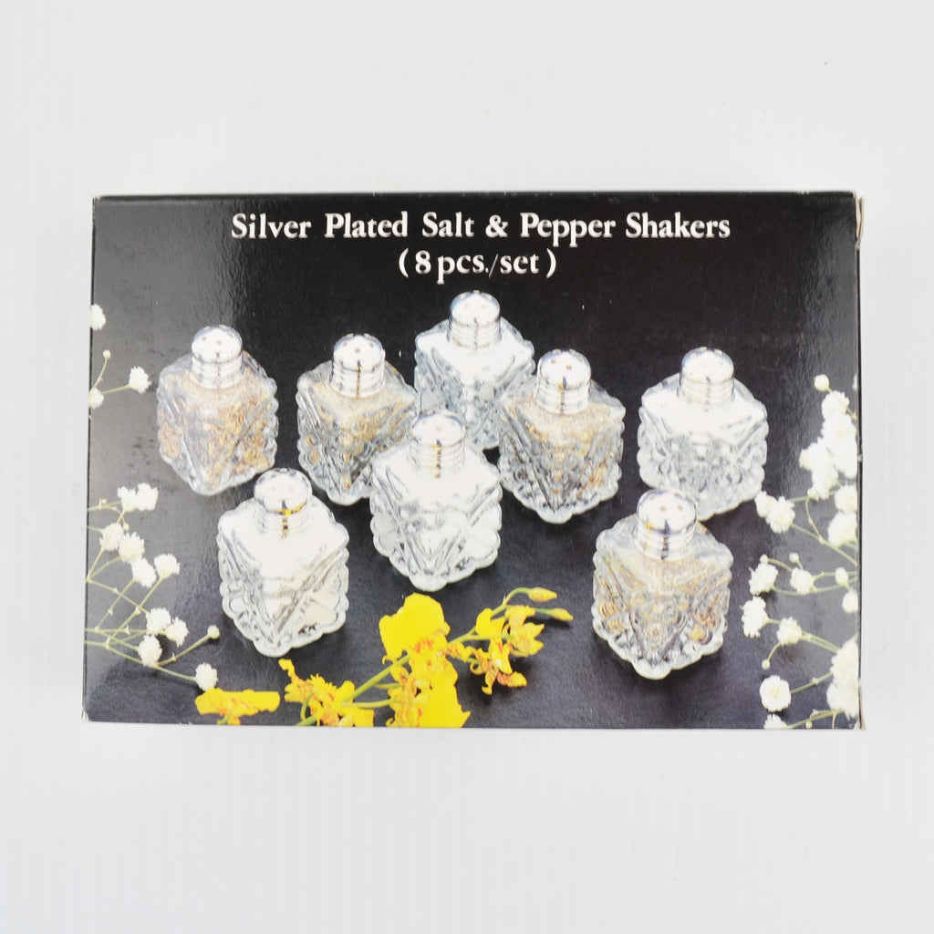 Vintage 8-Piece Silver-Plated Crystal Salt & Pepper Shakers – Elegant Cut Glass