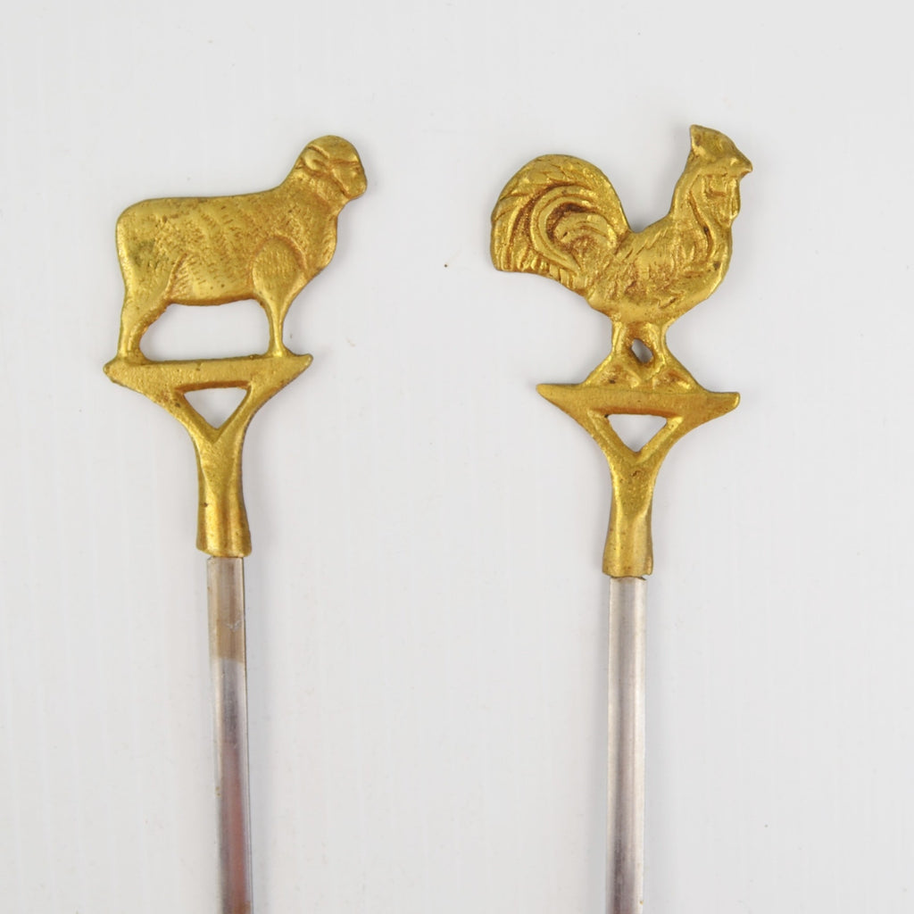 Vintage Turkish Brass and Stainless Steel Skewers Kabobs Animal Theme Lot of 2