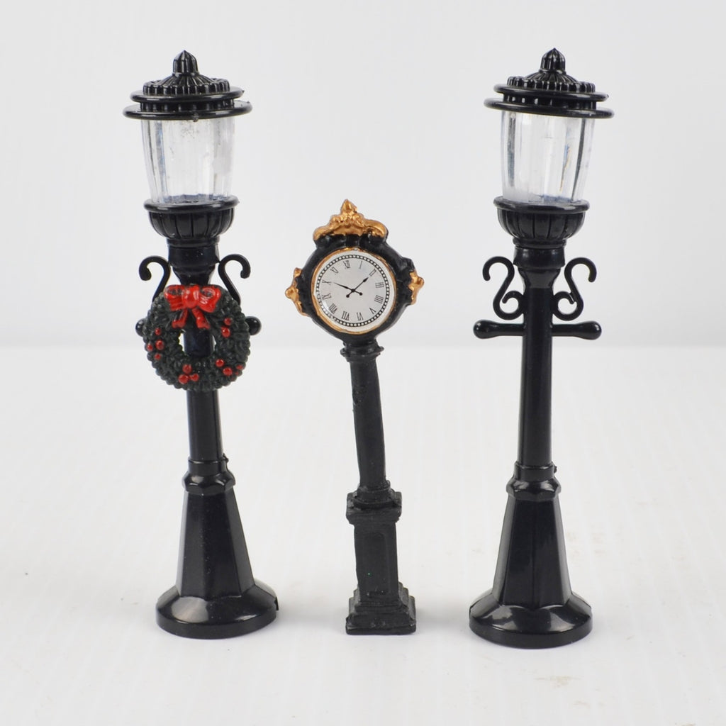 Lot of 17 includes: 7 Trees in 2 sizes, Santa, 2 Lamp Post, Clock, 3 people figures, dog house, bird bath, fire hydrant