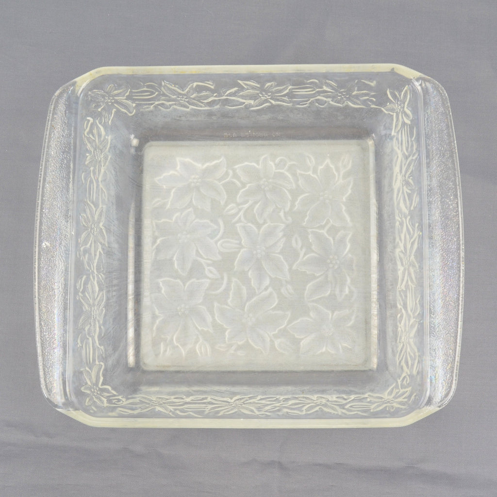 Princess House Fantasia Glass Square Dish 8" x 8" Poinsettia Square Baking Dish
