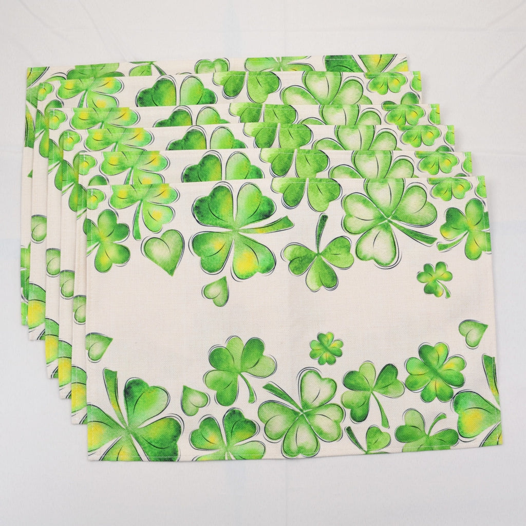 St Patrick's Day Placemats Set of 6, 13x19 Inch Cloth Green Shamrock